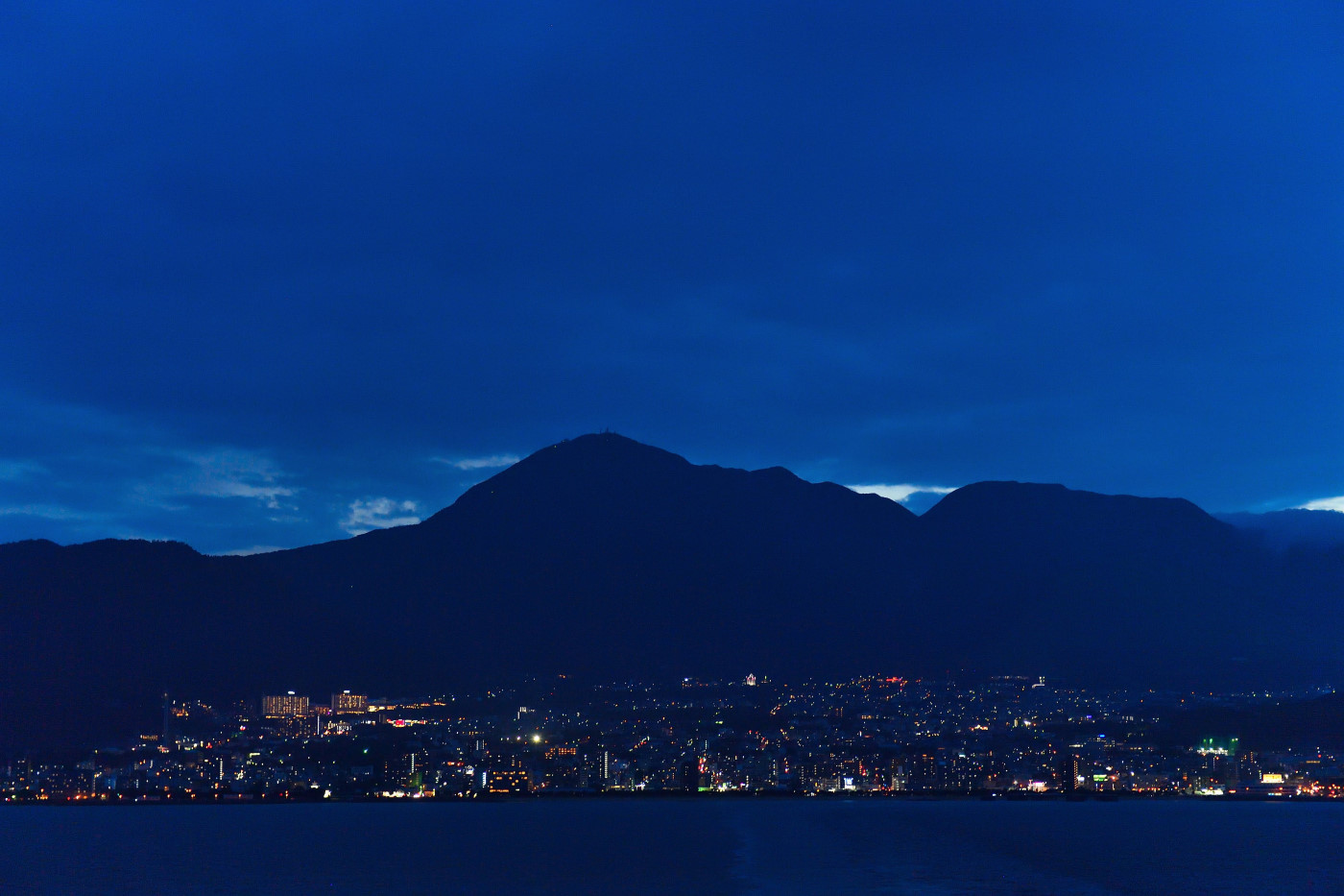 鶴見岳を中央に左手に有名な杉乃井ホテルの灯りも見えます。