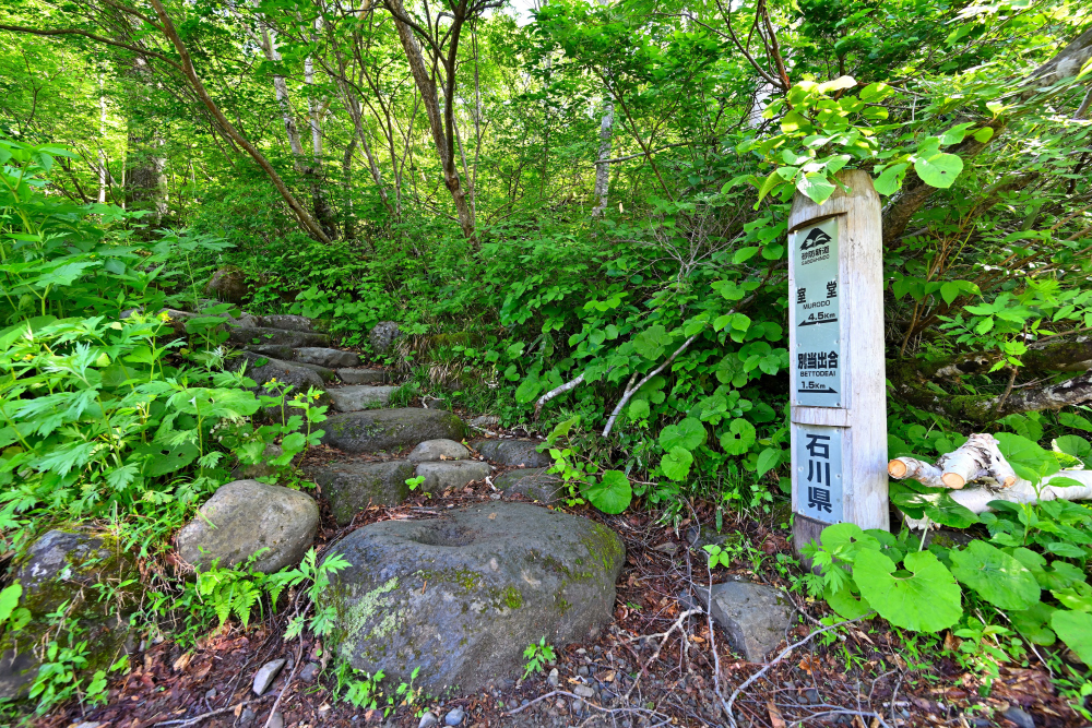 小休止を終えて鳥居を潜り右手に進むと登山道が続いています。ここからラストスパートで登り切ったら御前峰が待っています。